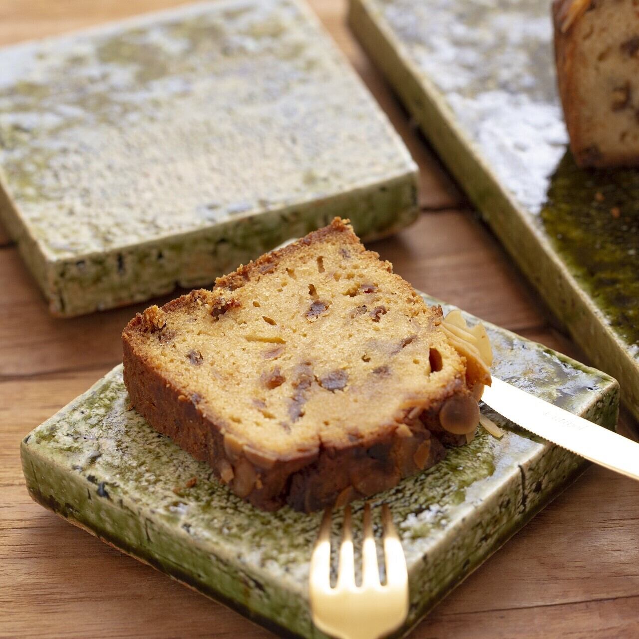 それぞれ、洋酒にドライフルーツを長期間漬け込んでいます。ケーキ生地に洋酒ごとたっぷり配合し、焼き上がったあとにも洋酒を何度もしみこませながら1か月熟成して仕上げています。